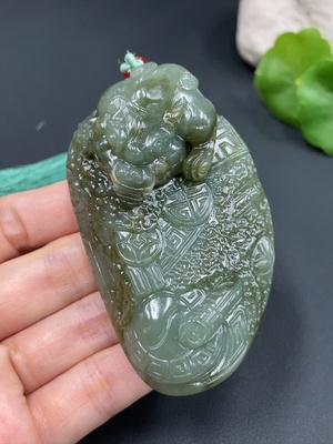 H19088577 Hetian Jade Handheld Piece Auspicious Beast Total Weight (including rope) 124.5g
