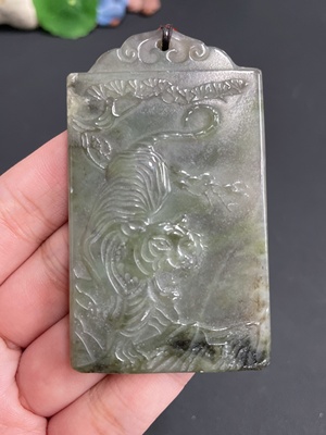 H19191884 Hetian Jade Pendant Fierce Tiger with rope total weight 64.14g