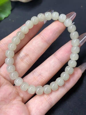 H33900816 Hetian Jade Bracelet, Approx. 5.8 mm Beads, Total Weight Approx. 13.5g