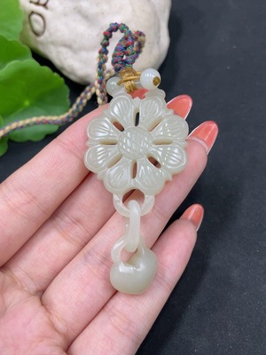 H34062560 Hetian Jade Pendant Prosperity in Full Bloom