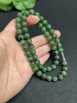 H34072650 Hetian Jade Jasper Bead Necklace, approximately 7.8mm, total weight about 44.1g