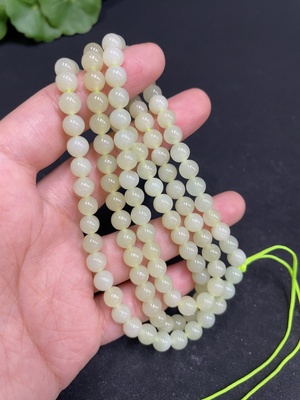 H36214703 Hetian Jade Bead Necklace, Approx. 5.9mm, Total Weight Approx. 37g