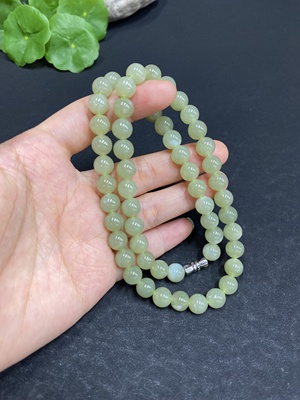 H33859208 Hetian Jade Bead Necklace, approx. 7.8mm, total weight approx. 45.5g