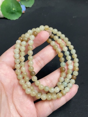 H31659371 Hetian Jade Bracelet (Containing Other Mineral Components, Undetermined Skin Color Origin, Matching Beads Not Hetian Jade, Total Weight Approximately 49.1g)