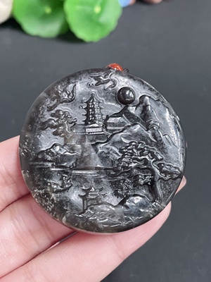 H35148839 Hetian Jade Pendant Landscape Plaque