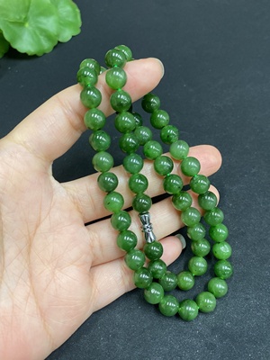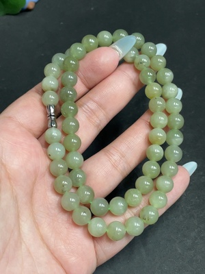 H30546270 Hetian Jade Bead Necklace, Approx. 7.8mm, Total Weight Approx. 45.1g