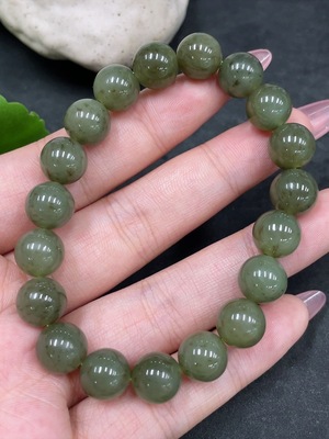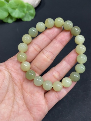 H35149630 Hetian Jade Bracelet, approx. 9.1 mm beads, total weight approx. 34.4g, non-Hetian Jade accessory beads