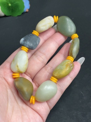 H34074073 Hetian Jade Bracelet, Undetermined Skin Color Cause, Contains Other Mineral Components, Total Weight Approximately 67.8g