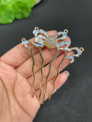 H34037363 Hetian Jade Hairpin Approx. 9.2mm Non-gold inlaid Total weight approx. 8.6g