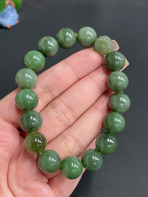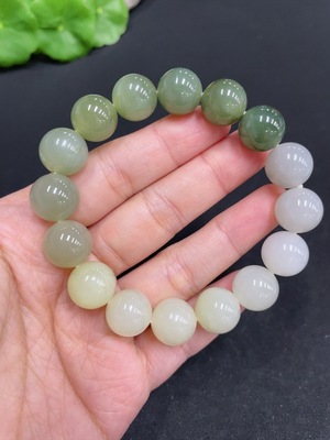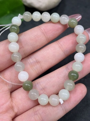 H33886180 Hetian Jade Bracelet, Undetermined Skin Color Origin, Contains Other Mineral Components, Non-Hetian Jade Beads Included, Total Weight Approximately 49.4g