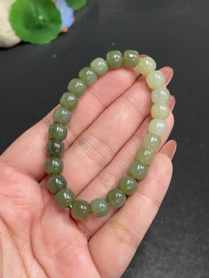 H35129823 Hetian Jade Bracelet, approx. 5.6/5.8mm, total weight about 21.5g, with non-Hetian Jade beads and impurities