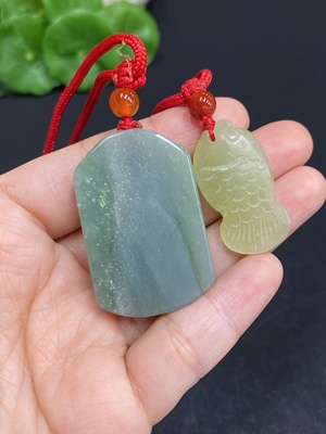 H27113136 Hetian Jade Pendant Avalokiteshvara Lotus and Fish Design Total Weight Approx. [with Rope] 48g