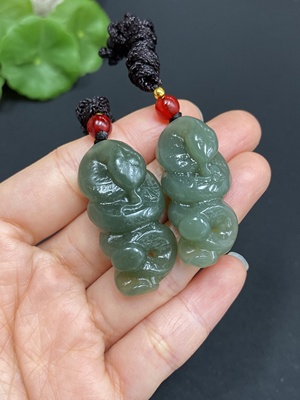 H24834298 Hetian Jade Pendant Snake Total Weight Approx. (Including Rope) 17.9g
