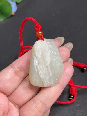 H23604714 Hetian Jade Handheld Ornament - Year of Abundance - Undetermined Skin Color Origin - Total Weight (Including Rope) 130.6g