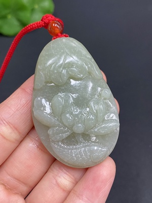 H25867939 Hetian Jade Pendant Dragon Lotus Total Weight Approx. [with Rope] 90g