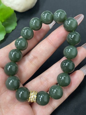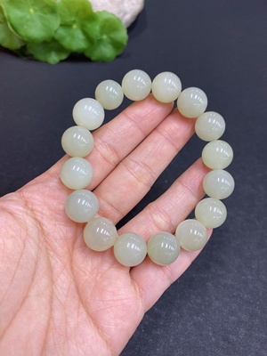 H39604392 Hetian Jade Bracelet, approx. 11.8mm beads, total weight approx. 43.9g