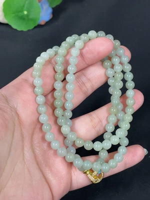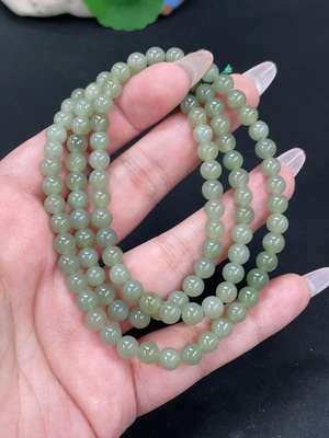 H37427830 Hetian Jade Bead Necklace, Approx. 6mm, Total Weight About 38.7g, Non-Gold