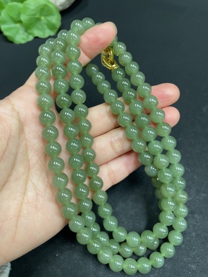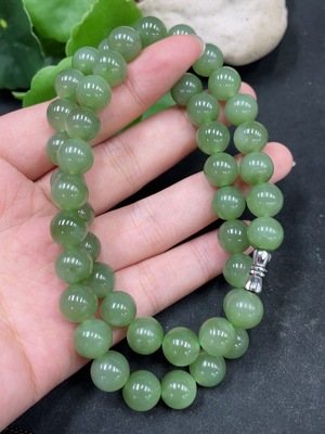 H35130956 Hetian Jade Bead Necklace, approx. 7.8mm, non-gold inlaid, total weight approx. 90.8g