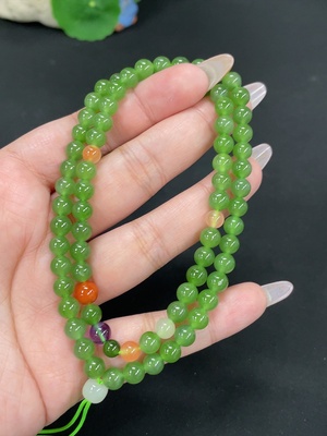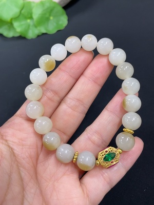H13478967 Hetian Jade Seed Bead Bracelet, Undetermined Skin Color Origin, Matching Beads Not Hetian Jade, Total Weight Approx. 38.4g