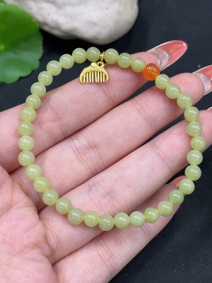H34053597 Hetian Jade Bracelet, Approx. 4.8mm, Total Weight Approx. 7.3g, Non-Gold, Beads Not Hetian Jade