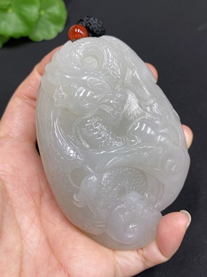 H34985313 Hetian Jade Handheld Ornament - Dragon Roaming the World