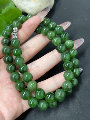 H39602791 Hetian Jade Jasper Bead Necklace Non-Gold About 9.3mm Total Weight Approximately 62.7g