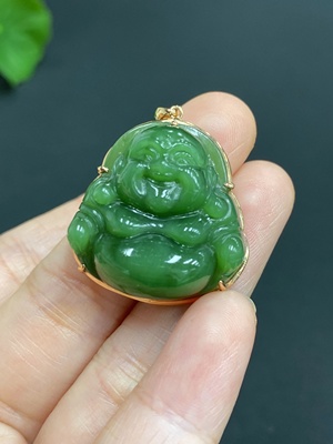 H23657183 Hetian Jade Inlaid Buddha 18k Gold Total Weight Approx.9.6g