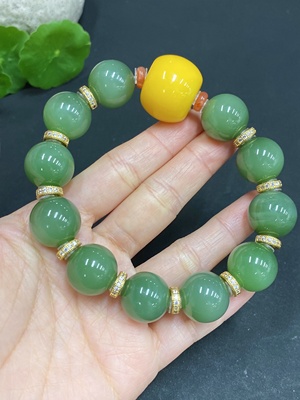 H36269481 Hetian Jade Bracelet, Approx. 15.7mm, Total Weight Approx. 81.8g, Contains Other Mineral Components, White and Yellow Beads Not Hetian Jade