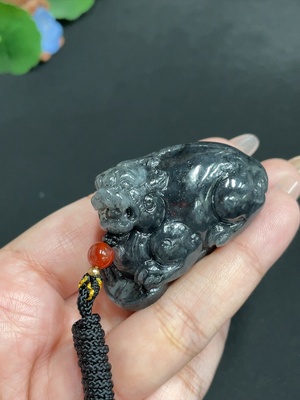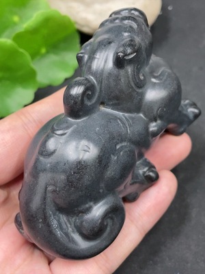 H36316136 Hetian Jade Handheld Carving - Auspicious Beast, Contains Other Mineral Components, Undetermined Skin Color Origin, Total Weight Approximately 181.2g