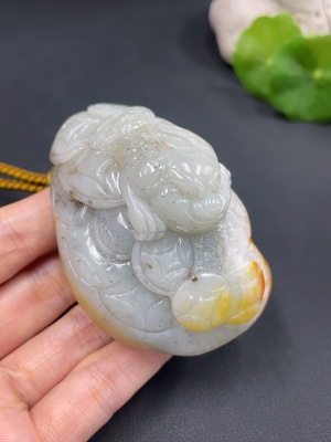 H19181945 Hetian Jade Handheld Carving - Three-Legged Golden Toad, Undetermined Skin Color Origin, Contains Other Mineral Components, Total Weight (Including Cord) Approximately 182.4g