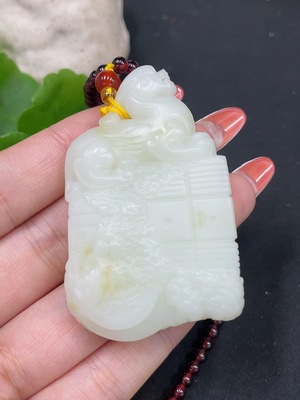 H19126921 Hetian Jade Handheld Piece Landscape Plaque Total Weight Approx. (Including Chain) 136g