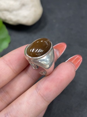 H34980425 Hetian Jade Inlaid Adjustable Ring Non-Gold Total Weight Approx. 6.7g