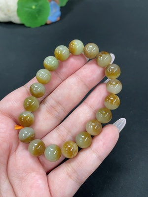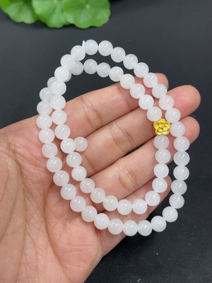 H39593134 Hetian Jade Bead Necklace, approx. 6mm, containing other mineral components, marked red with 99% gold content, rest non-gold, total weight approx. 22.7g