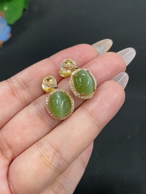 H39561973 Hetian Jade Jasper Inlaid Earrings Total Weight Approx. 4.4g 18k Gold Ear Studs Non-Gold with Diamond Accents