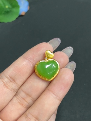 H34955802 Hetian Jade Jasper Inlaid Pendant Heart Total Weight Approx. 3.3g 18k