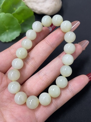 H39572491 Hetian Jade Bracelet, approx. 10mm beads, total weight about 31g