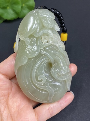 H36205626 Hetian Jade Handheld Carving Auspicious Beast