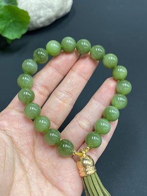 H13511152 Khotan Jade Bead Bracelet, approx. 9.5mm, total weight approx. 29.7g, non-gold inlaid