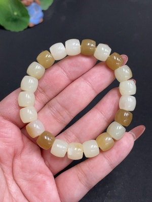 H32778058 Hetian Jade Bracelet, approx. 9.8mm beads, total weight approx. 32.2g