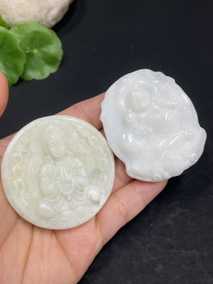H36269961 Hetian Jade Pendant - Buddha + Guanyin, Contains Other Mineral Components, Total Weight Approx. 84.4g