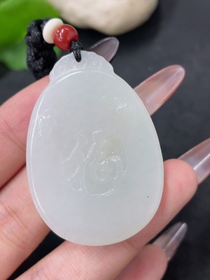 H28188291 Hetian Jade Pendant God of Wealth Total Weight (including rope): approx. 18.5g Undetermined skin color origin