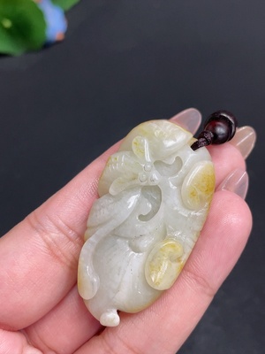 H31660427 Hetian Jade Pendant Ruyi Total Weight (with rope): approx. 27.4g Containing other mineral components Undetermined cause of skin color
