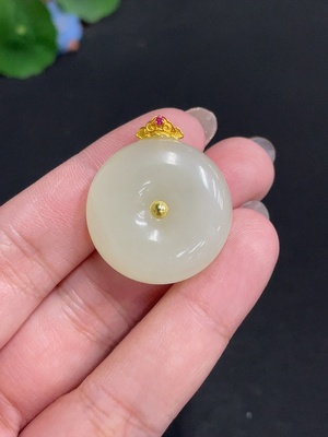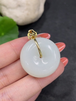 H34960541 Hetian Jade Pendant, Peace Buckle, 18k Gold Clasp, Total Weight Approx. 20.2g