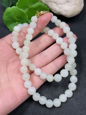 H31602247 Hetian Jade Bead Necklace, Approx. 7.8mm, Total Weight Approx. 46.7g