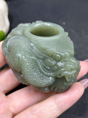 H33841978 Hetian Jade Handheld Ornament - Dragon Ring (Total weight: approx. 144.7g)