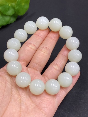 H30466076 Hetian Jade Bracelet Approx. 14.8mm Beads Total Weight Approx. 77.9g