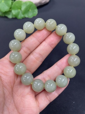 H37437856 Hetian Jade Bracelet, approx. 11.7mm beads, total weight approx. 42.4g
