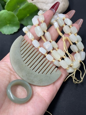 H39572476 Hetian Jade Comb Ring Size 18 Beaded Chain Total Weight Approx. 66.5g