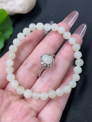 H39633345 Hetian Jade Inlaid Adjustable Ring + Bracelet Non-Gold Total Weight Approx. 11.7g