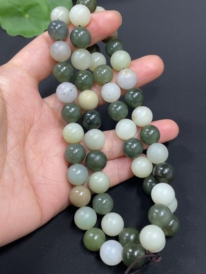 H37466600 Hetian Jade Beaded Necklace, approx. 9.7mm, total weight approx. 85.5g
